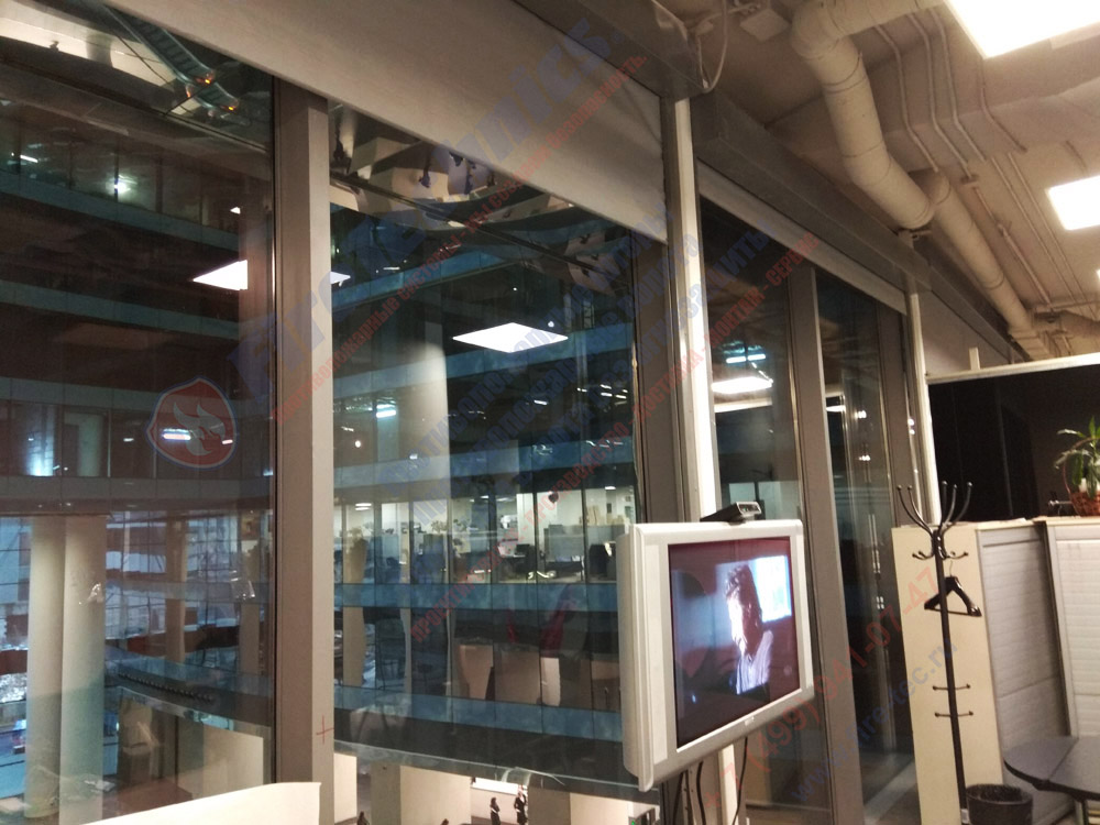 В случае возникновения возгорания оповещательная пожарная система подает сигнал на пост пожарной станции, а также на управленческий блок автоматических противопожарных штор для окон, которые автоматически опускаются. В результате они локализуют очаг задымления или возгорания.